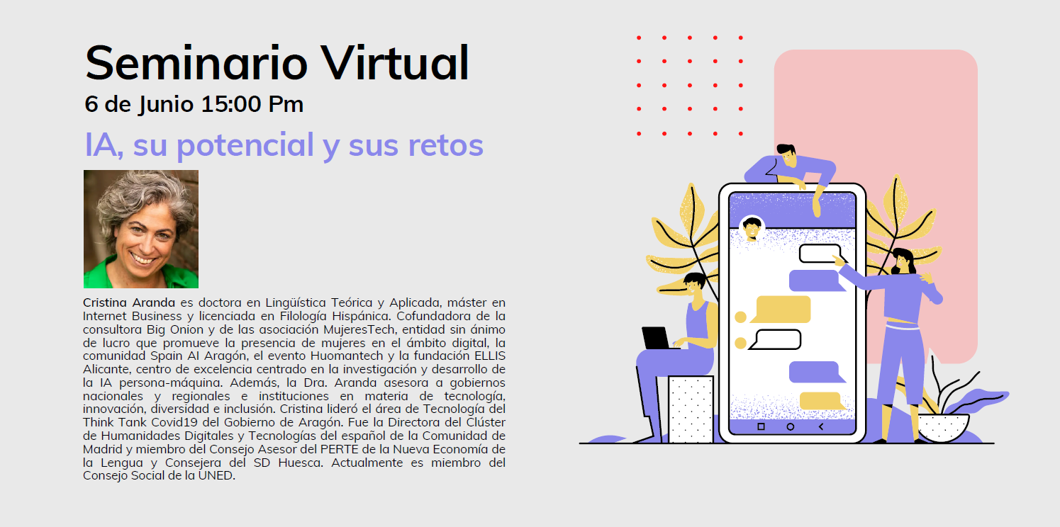 Te invitamos a participar en el primer seminario Pre-Radia sobre Inteligencia Artificial (IA) con Cristina Aranda, una destacada divulgadora en el campo. El seminario, titulado «IA, su potencial y sus retos», está diseñado para personas no expertas y abordará el concepto y las posibilidades de la IA en un lenguaje accesible. También habrá un espacio para resolver dudas y consultas.