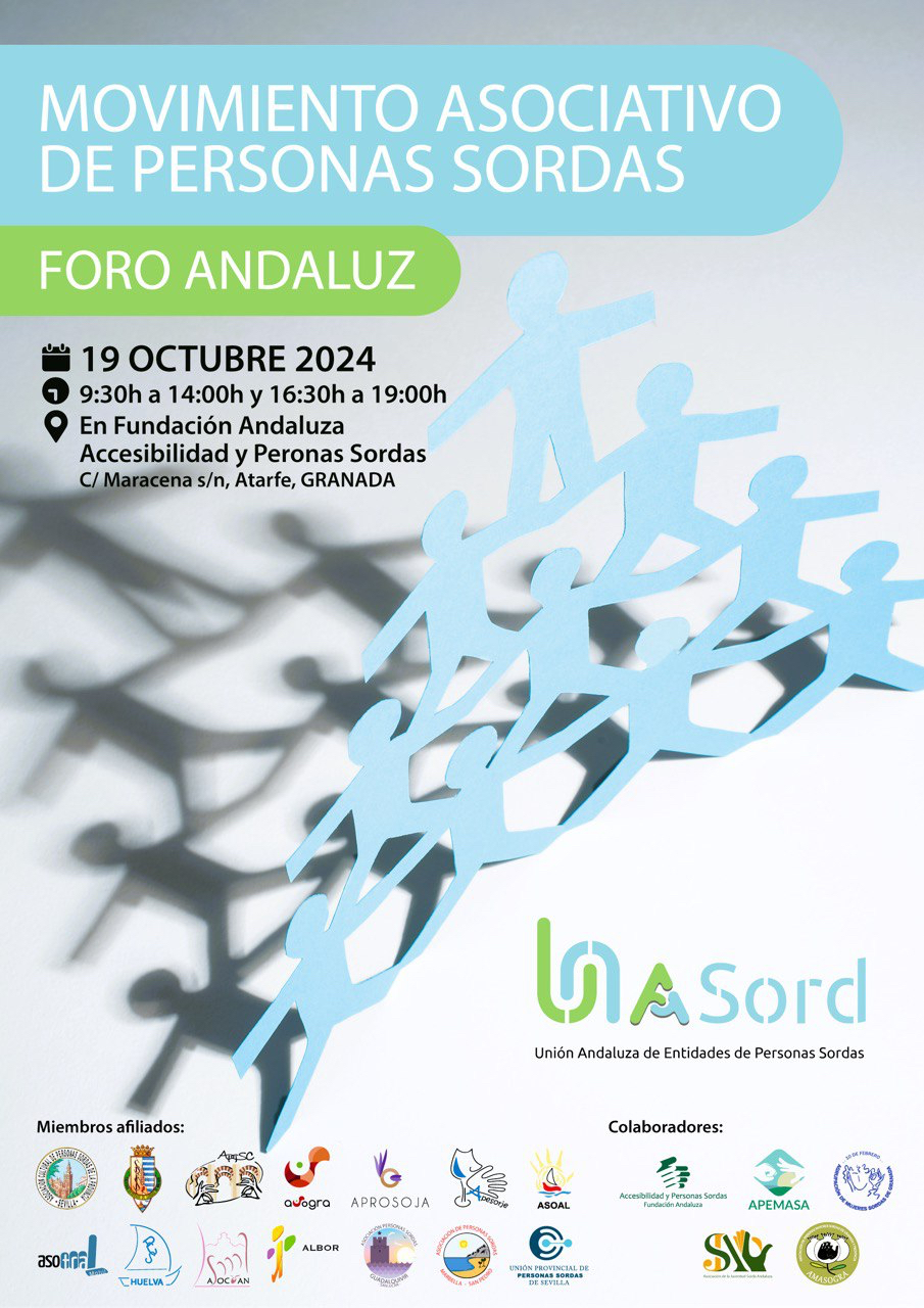 La Unión Andaluza de Entidades de Personas Sordas (UNASORD) invita a todas las asociaciones miembro al Foro Andaluz, un espacio de encuentro y debate para la Redefinición de Políticas Asociativas Sordas Andaluzas.
