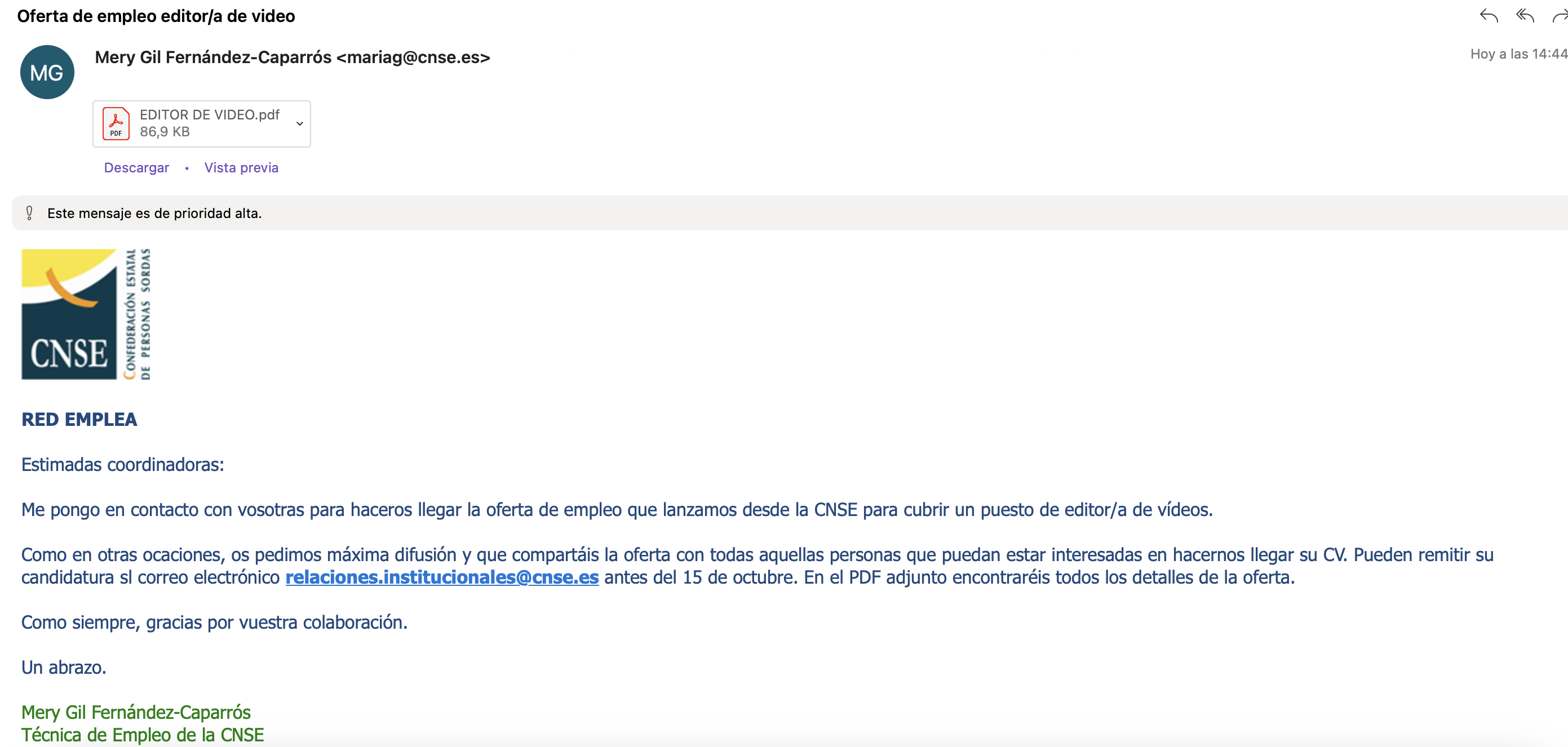 En breve os remitiremos el vídeo signado, el cual se publicará en redes sociales el lunes 23 de septiembre.