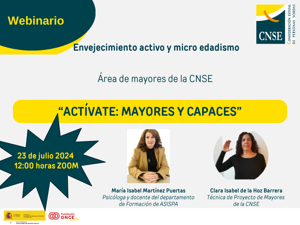 Con motivo de la celebración del día de los abuelos, la CNSE ha preparado un webinario sobre Envejecimiento Activo y Micro Edadismo dirigido a todas las personas sordas que quieran aprender más sobre estos temas, pero en especial dedicado a las personas mayores sordas.