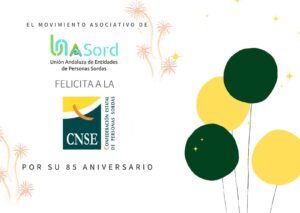 UNASORD y la Comunidad Sorda Andaluza felicita a la CNSE por estos 85 años de vida federativa. El trabajo que ha desarrollado y el que continua haciendo ha permitido fortalecer el protagonismo de las personas sordas y respetar su identidad y cultura. ¡¡Gracias!!